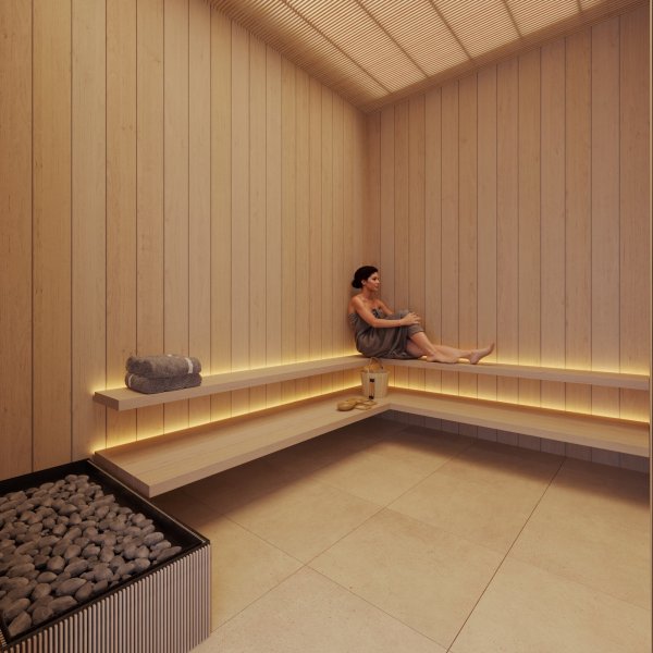 Resort-style living: high-quality communal areas including swimming pools for adults and children, a gym, wellness sauna, coworking spaces, and beautiful landscaped gardens.