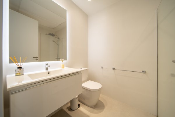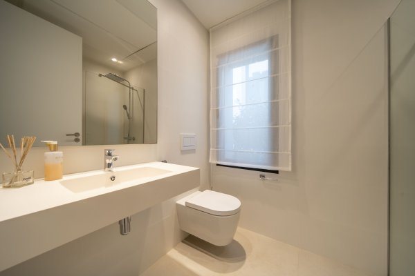 Elegantní koupelny s prémiovými materiály a čistým moderním designem