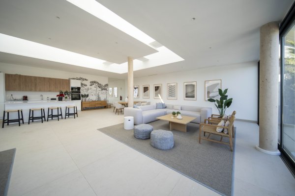 Vila se prodává kompletně zařízená designovým nábytkem na míru — připravena k okamžitému užívání nebo pronájmu bez dalších investic