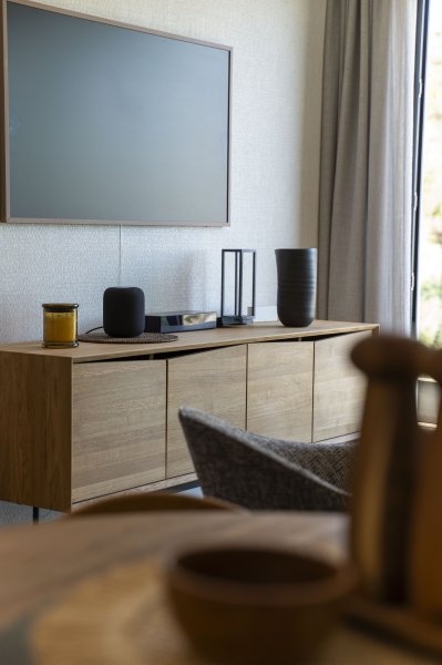 Podlahové vytápění v koupelnách, dálkové ovládání topení a klimatizace, dálkové ovládání osvětlení, žaluzií a vybraných elektrických zásuvek. Výsuvné markýzy.